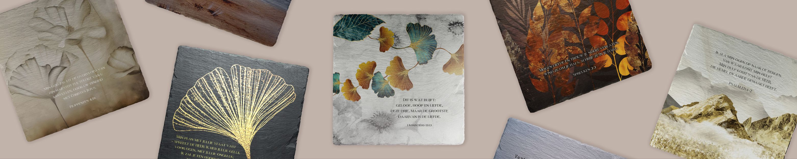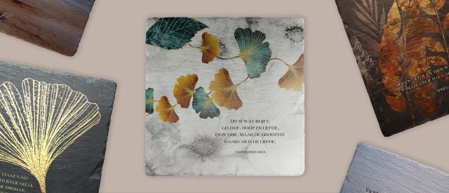 Met een leistenen tegel van 15×15 cm geef je geloof en inspiratie een duidelijke en blijvende plek in je interieur.