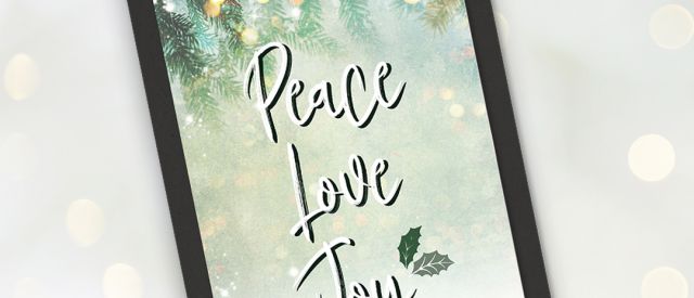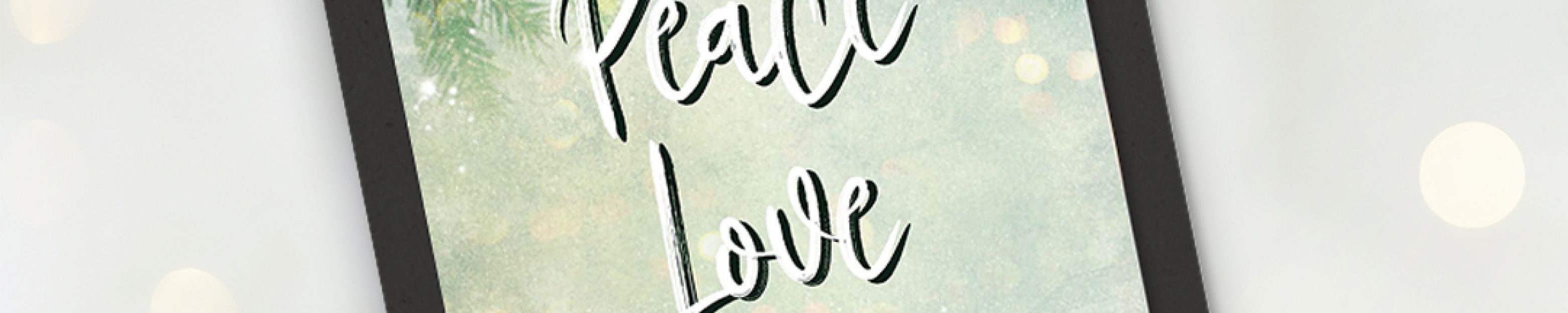 Minikaartje Kerst ‘Peace, love, joy’ + klembordje