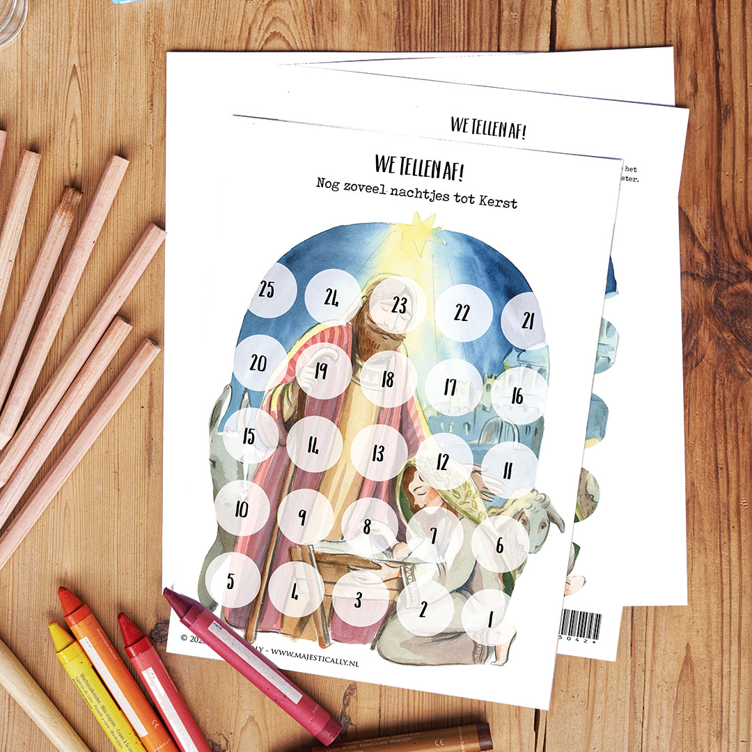 Aftelkalender met stickers om (samen met je kind) de adventstijd te beleven.