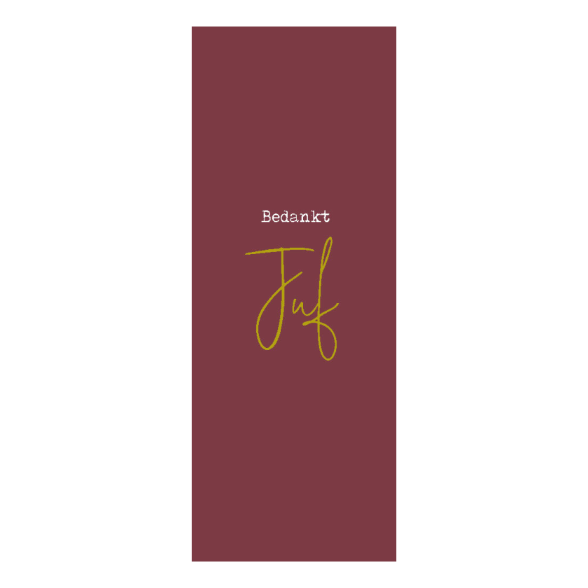 Luxe boekenlegger met de tekst: ‘Bedankt juf’.