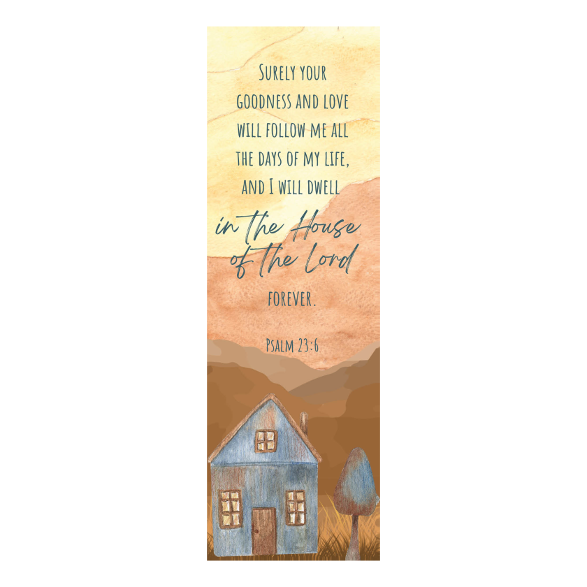 Deze boekenlegger herinnert aan Gods trouwe nabijheid, dag in dag uit, en het diepe verlangen om altijd thuis te zijn bij Hem.