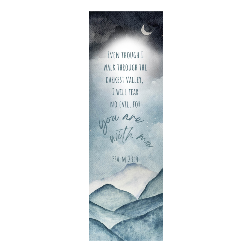 Deze boekenlegger weerspiegelt de vrede en bescherming die God geeft, zelfs in de donkerste dalen van het leven. Het licht staat symbool voor Zijn aanwezigheid die nooit verdwijnt – zelfs wanneer het donker om je heen is.