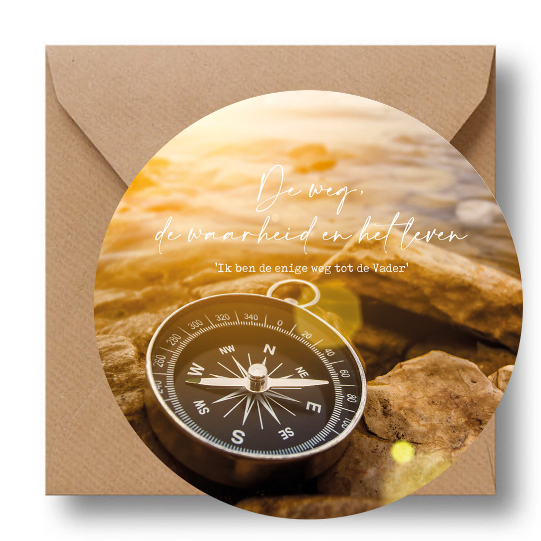 Rond cadeaubordje van karton uit de serie Cirkelcadeau met de tekst: ‘Ik ben de enige weg tot de Vader.’