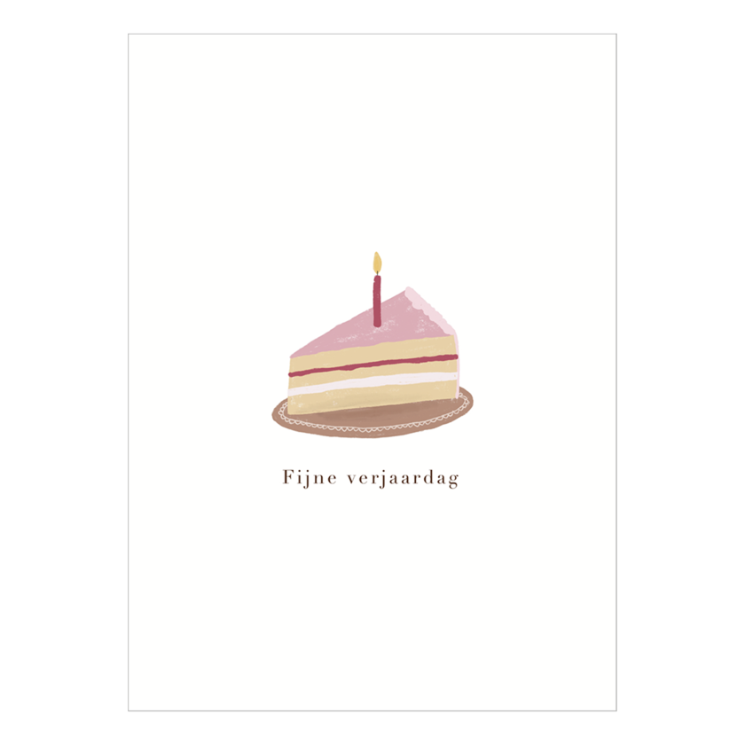 Een enkele kaart op dik papier met de afbeelding van een gebakje en de tekst ‘Fijne verjaardag.’
