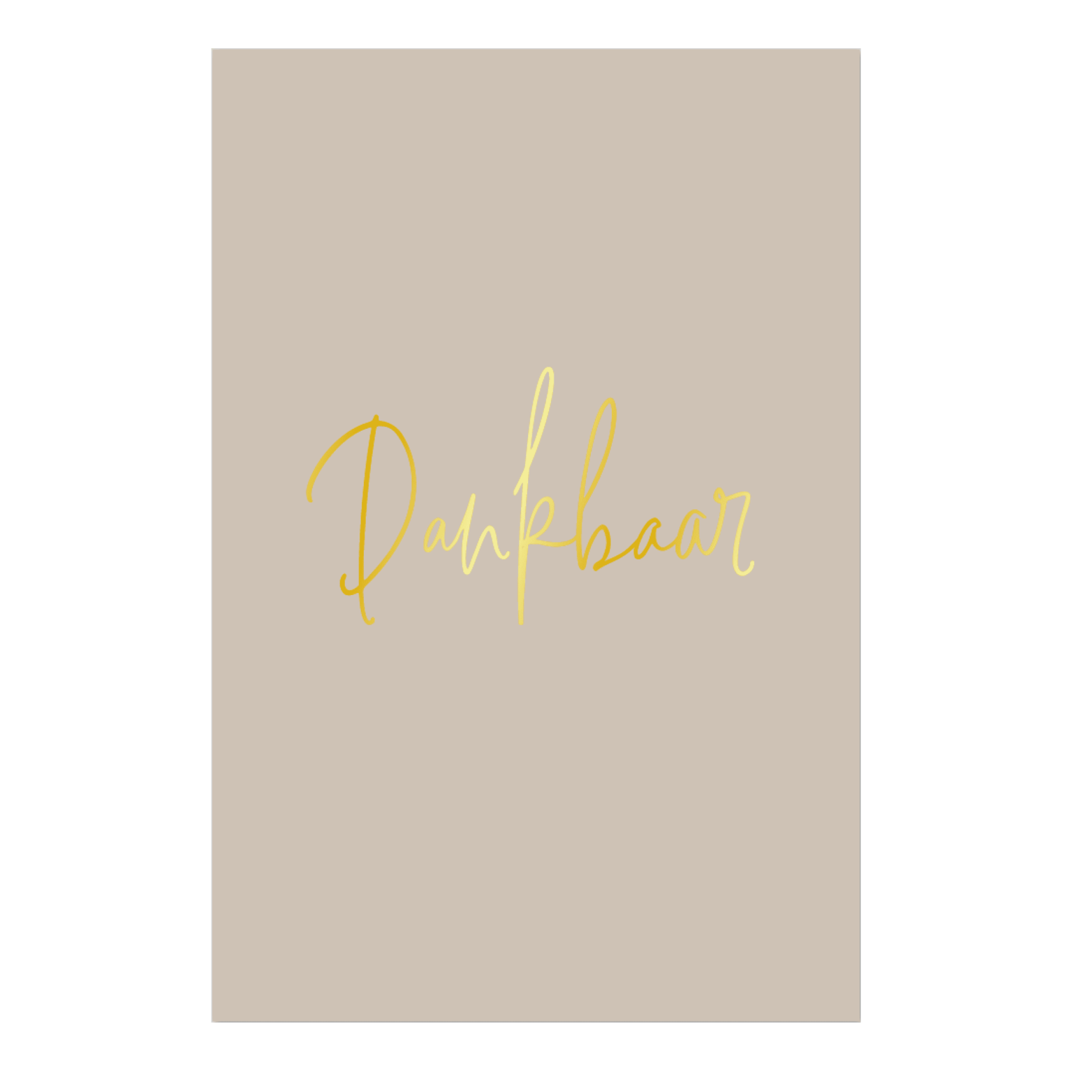 Luxe kaart uit de serie ‘Schrijven is Goud’, bedrukt met prachtig goudfolie. Tekst: ‘Dankbaar’
