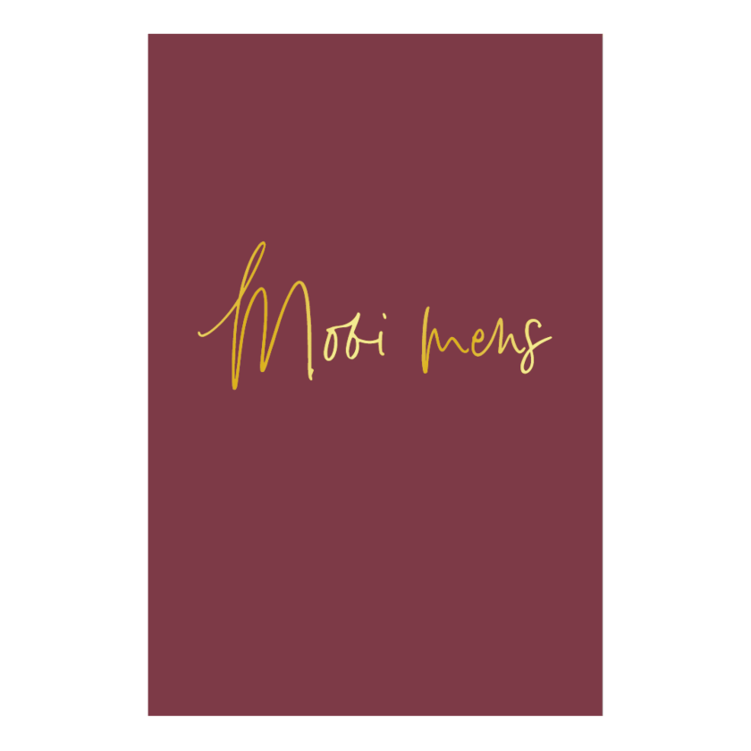 Luxe kaart uit de serie ‘Schrijven is Goud’, bedrukt met prachtig goudfolie. Tekst: ‘Mooi mens’