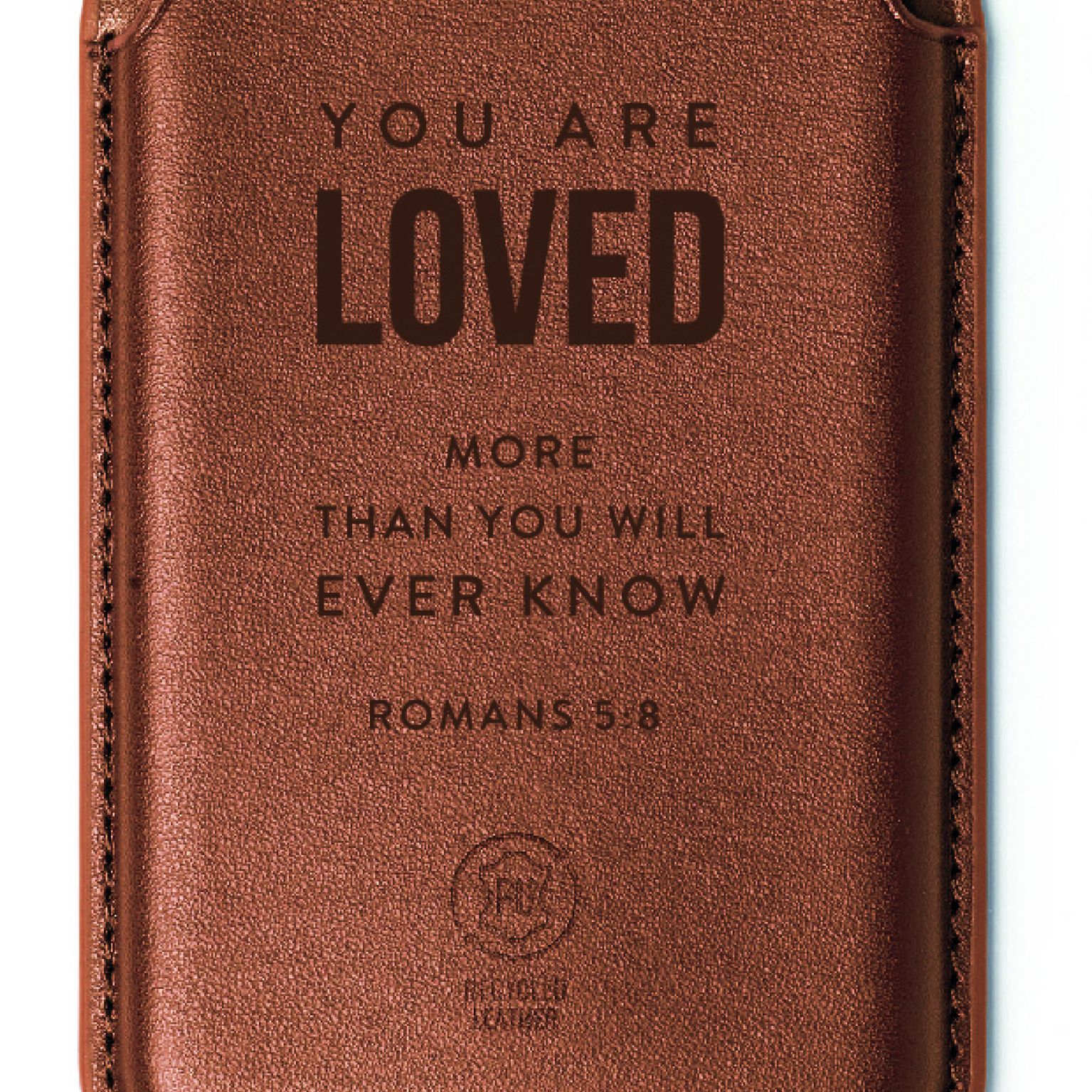 Superhandige, magnetische kaarthouder voor op je mobiele telefoon met de mooie tekst: You are loved more than you will ever know – Romans 5:8