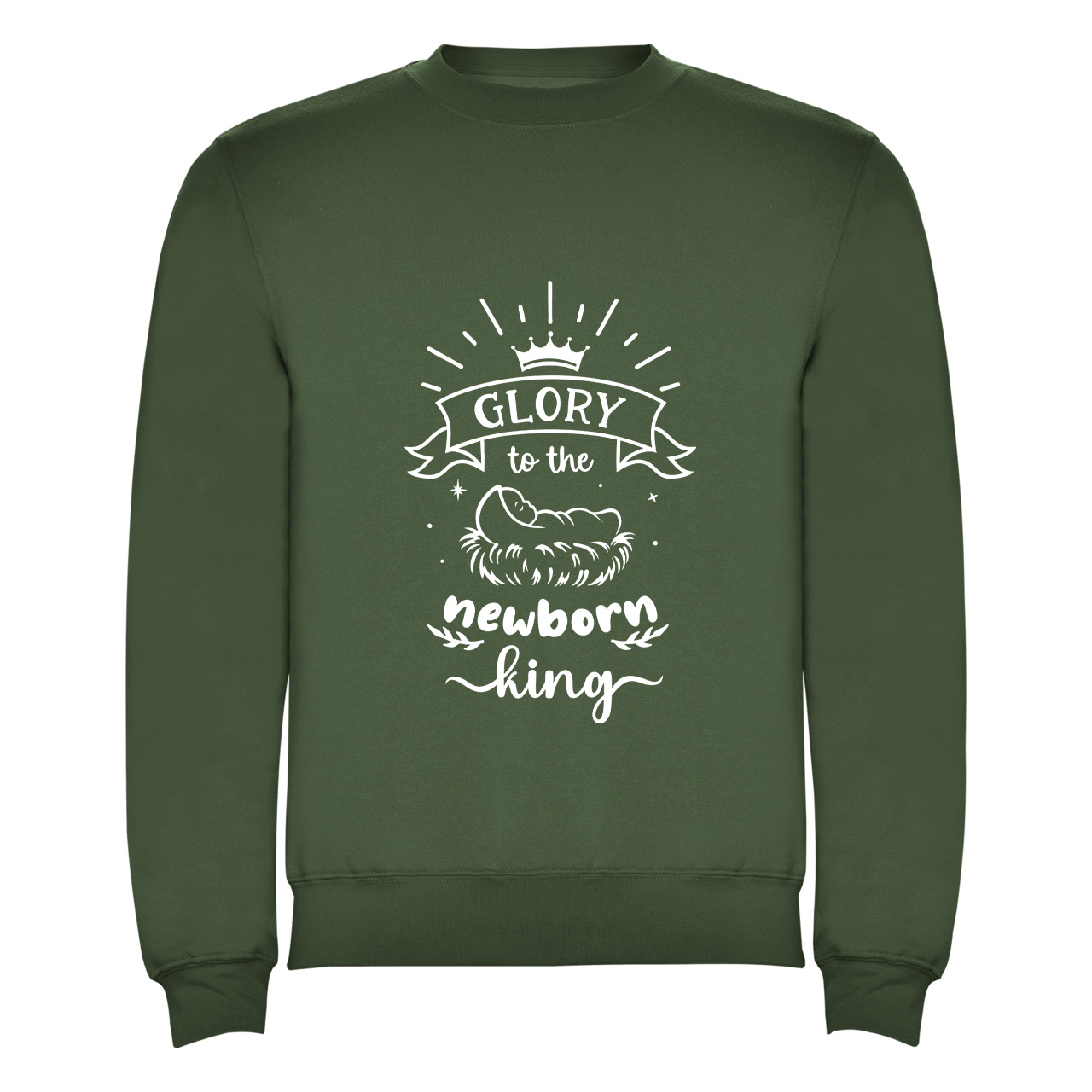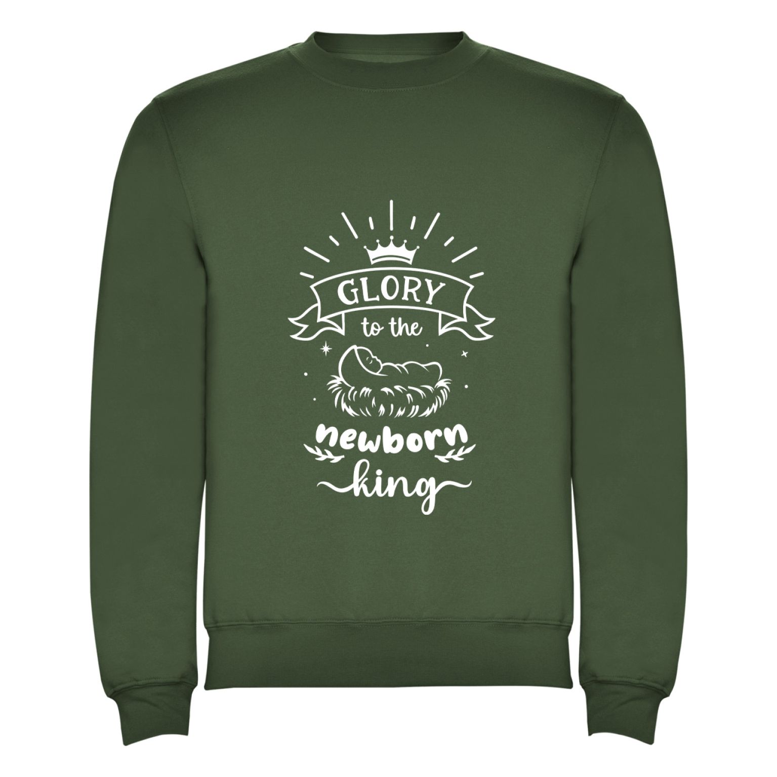 Een warme en stijlvolle christelijke kersttrui, beschikbaar in maat S t/m 3XL en in de kleuren groen, rood, blauw en zwart.