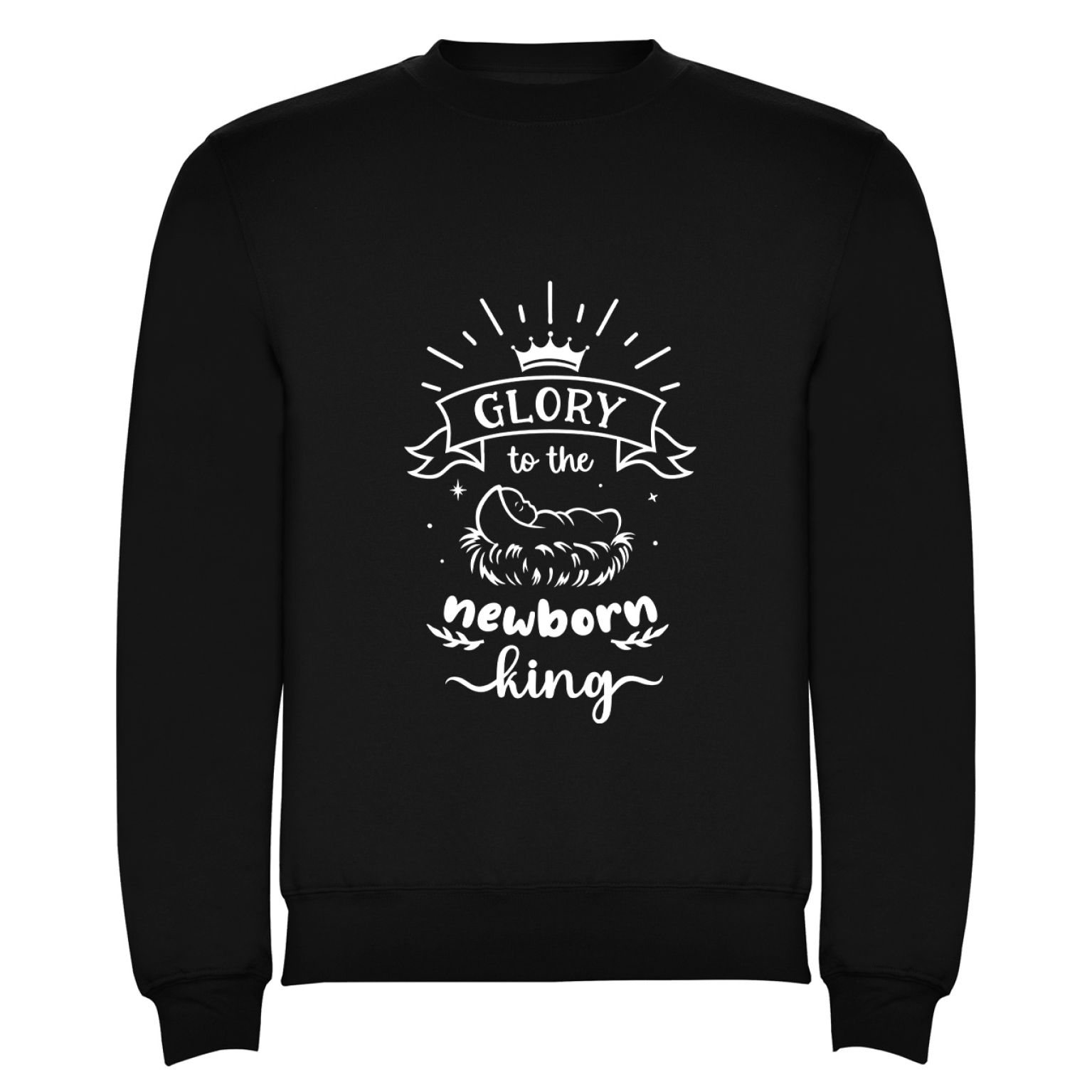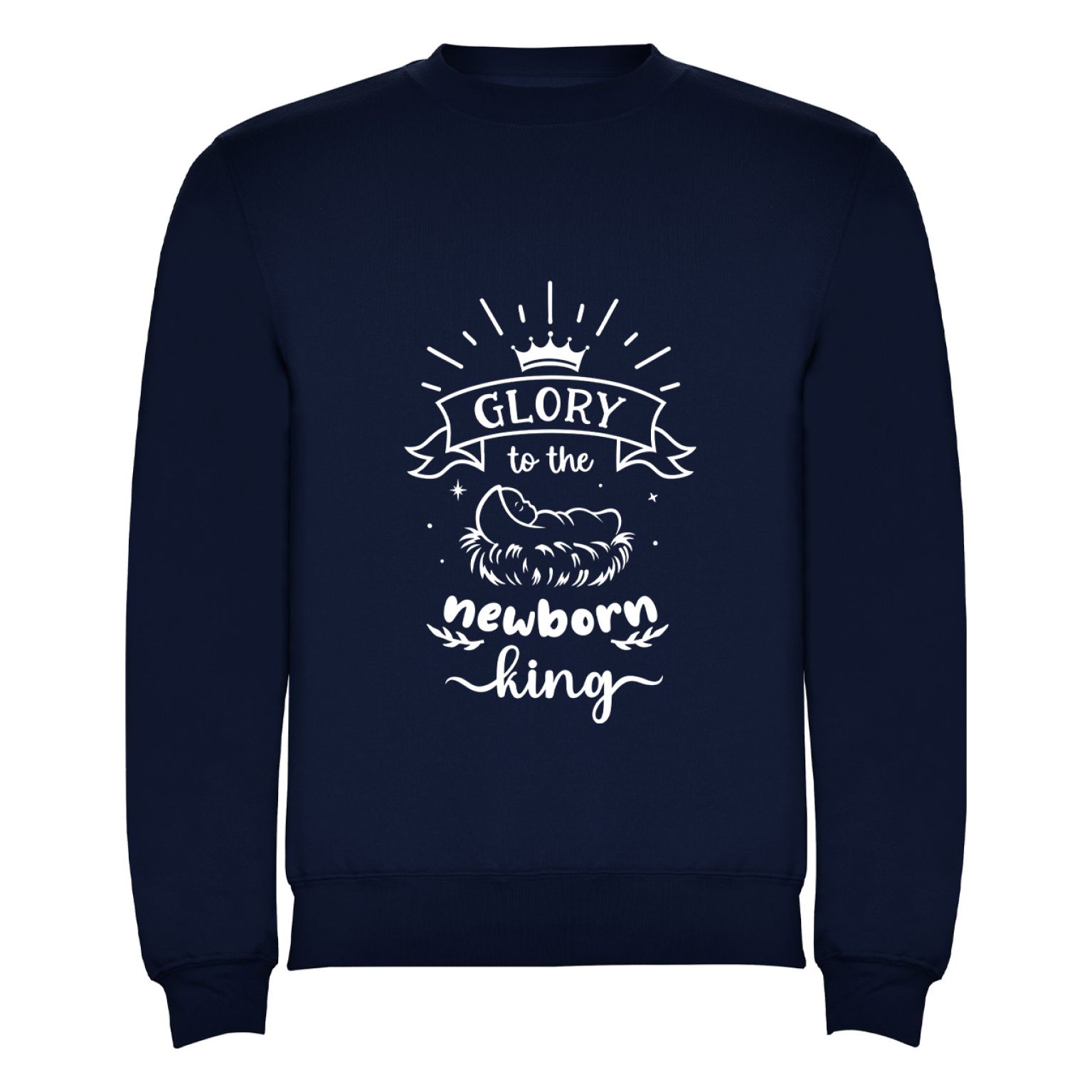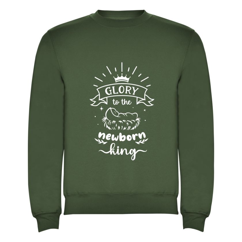Op de voorzijde prijkt een grote, mooie print met de tekst “Glory to the newborn King”, geïnspireerd op het klassieke kerstlied.
