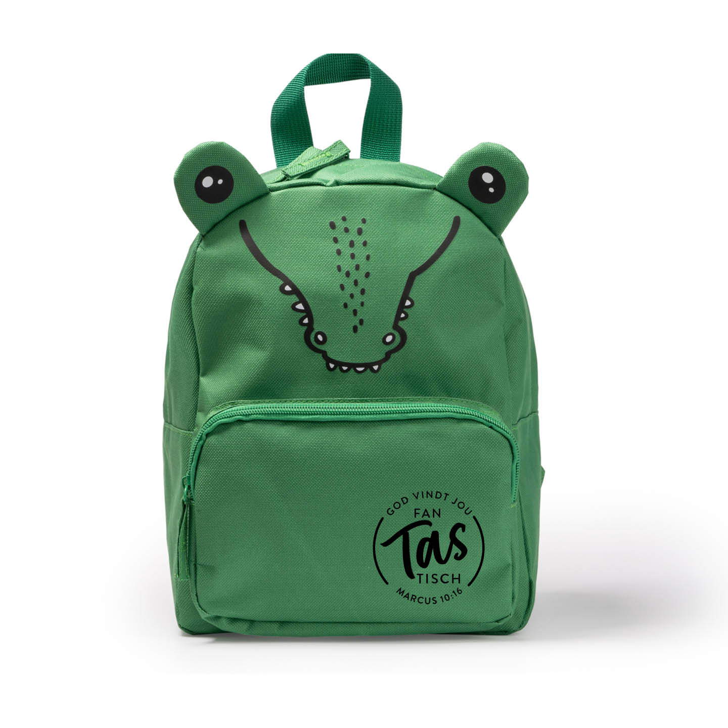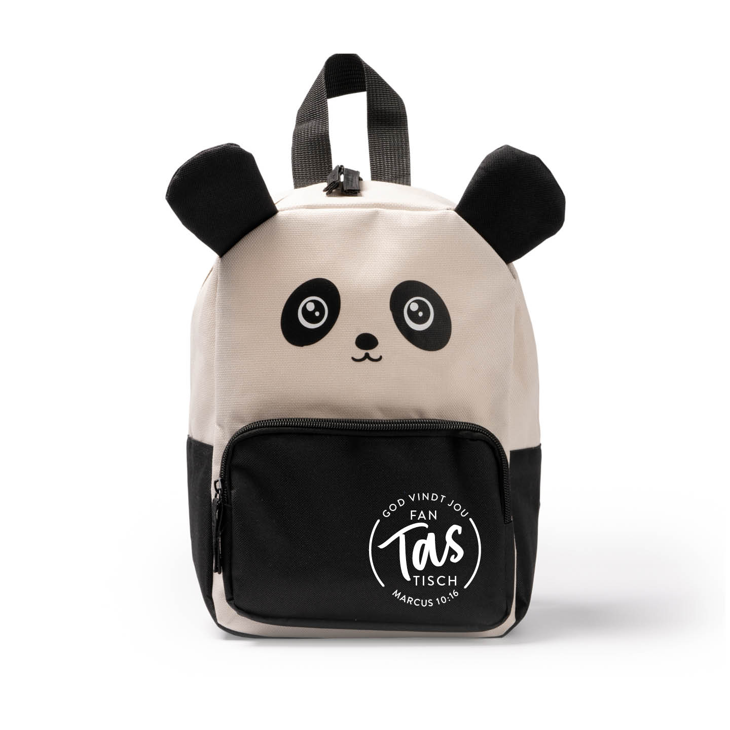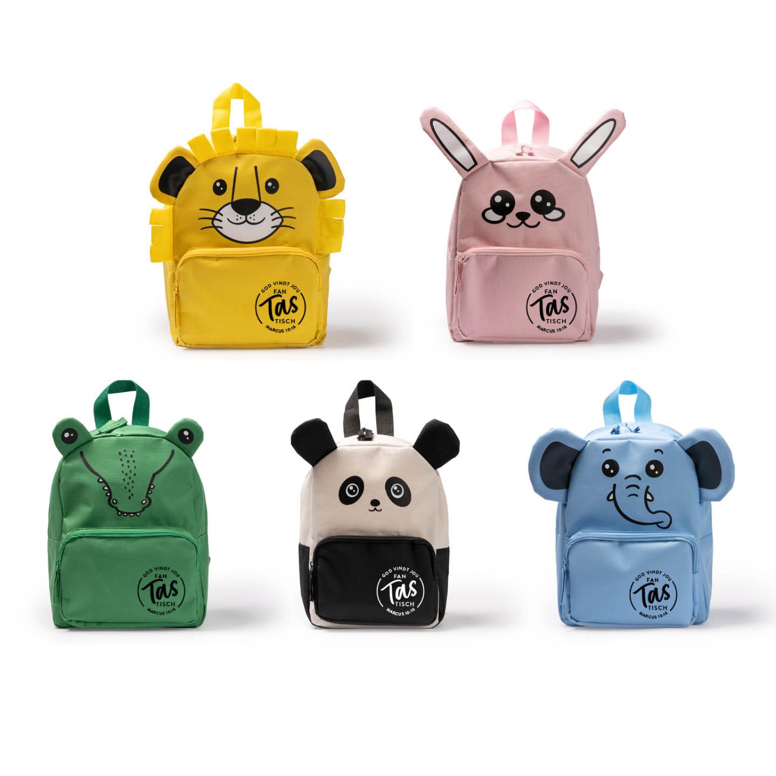 Lief kinderrugzakje met dierenmotief en de tekst: ‘God vindt jou fanTAStisch’ – Marcus 10:16.