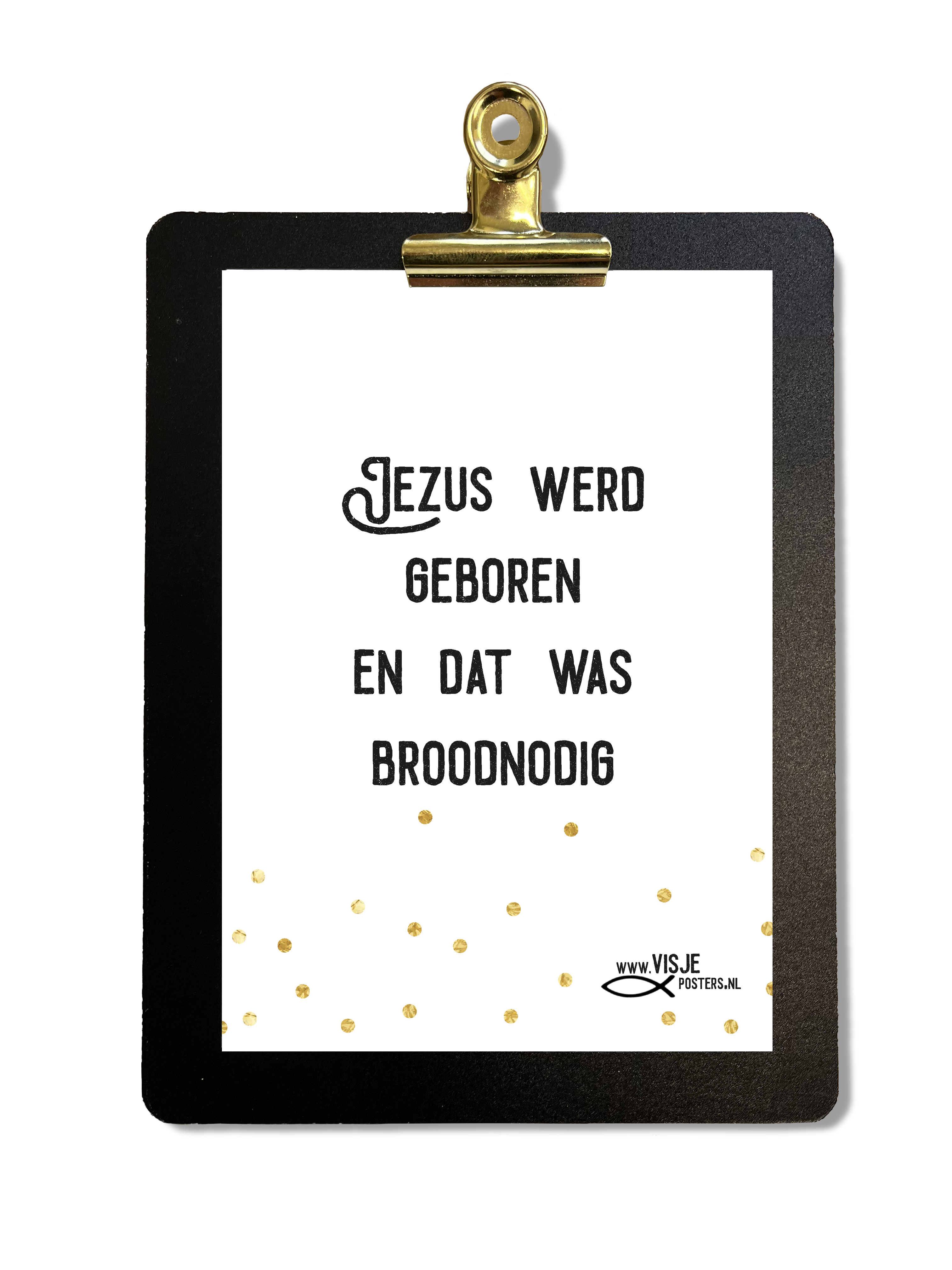 De kerstkaart bevat de inspirerende tekst: “Jezus werd geboren en dat was broodnodig,” en voegt een warme, betekenisvolle boodschap toe aan je kerstdecoratie.