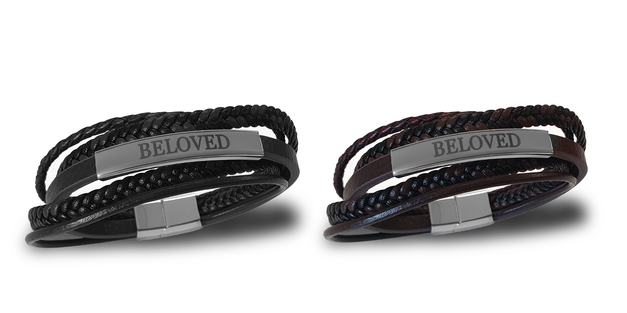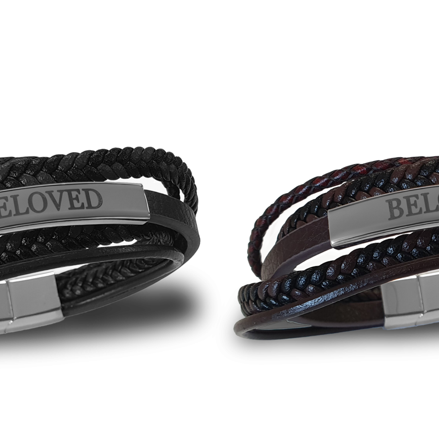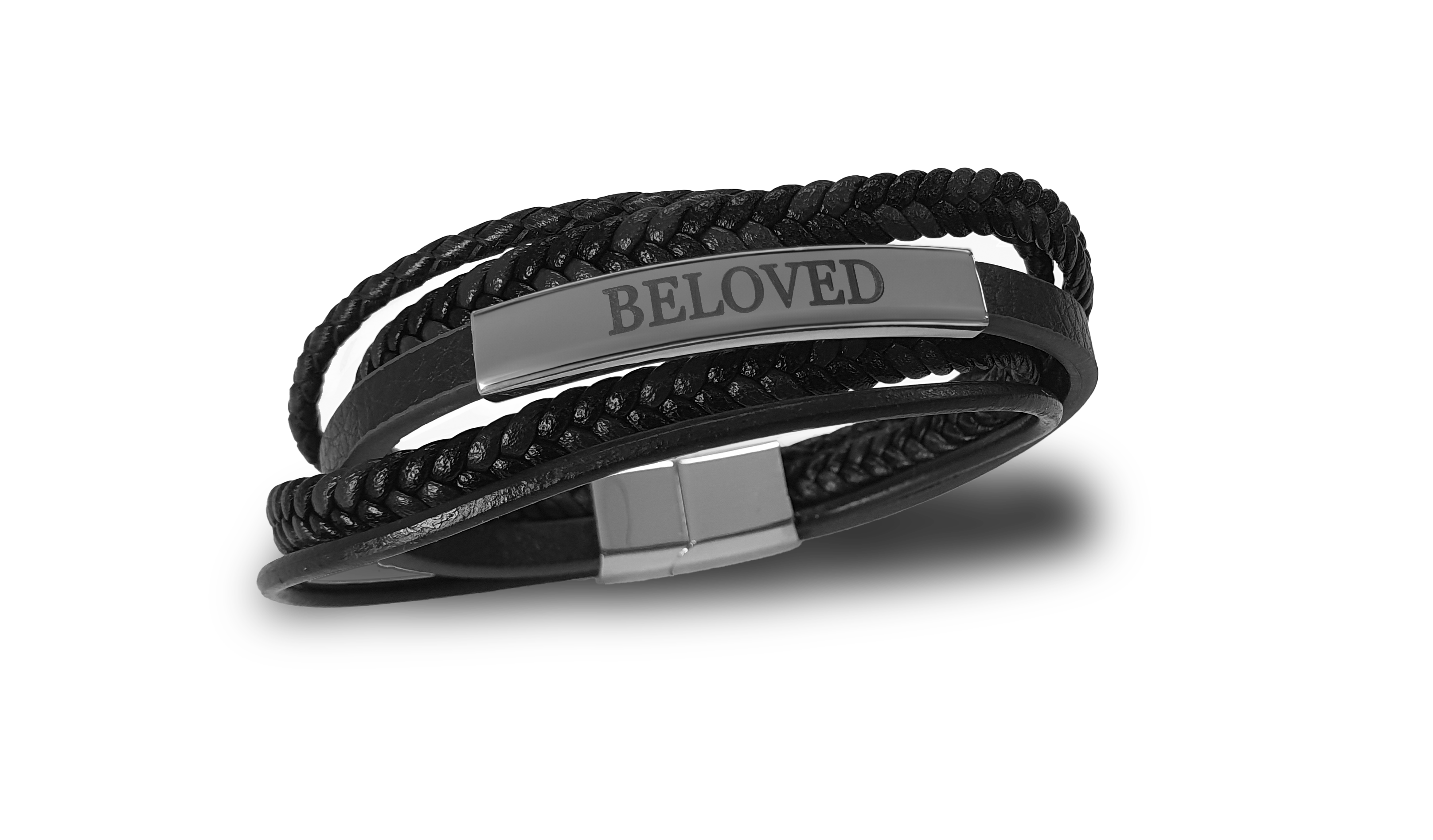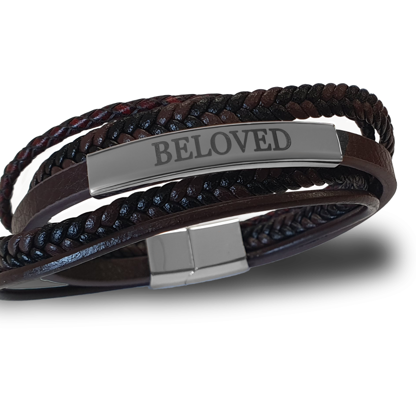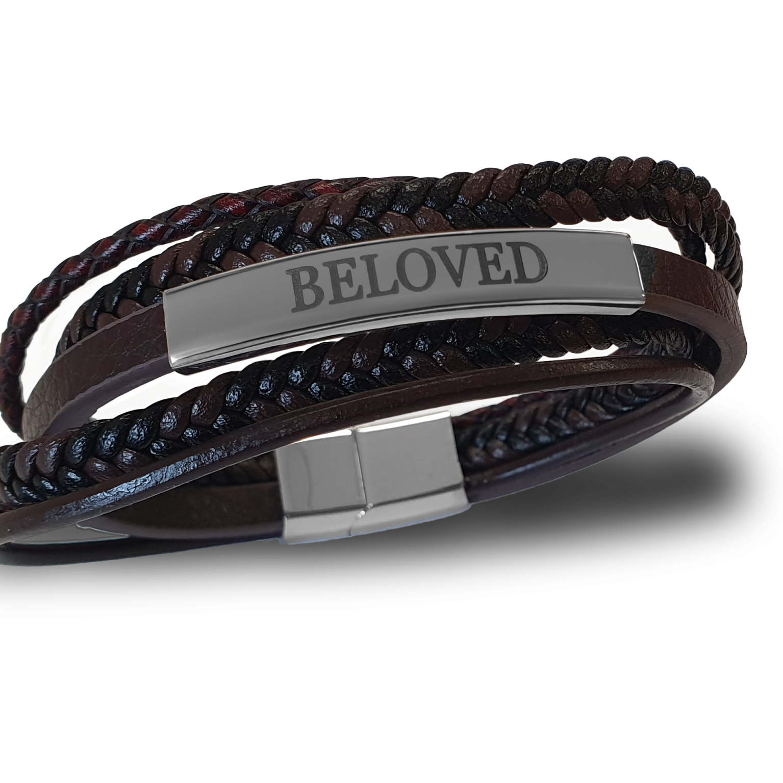 Een stoere, stevige armband van meerdere lagen met het woord ‘Beloved’.