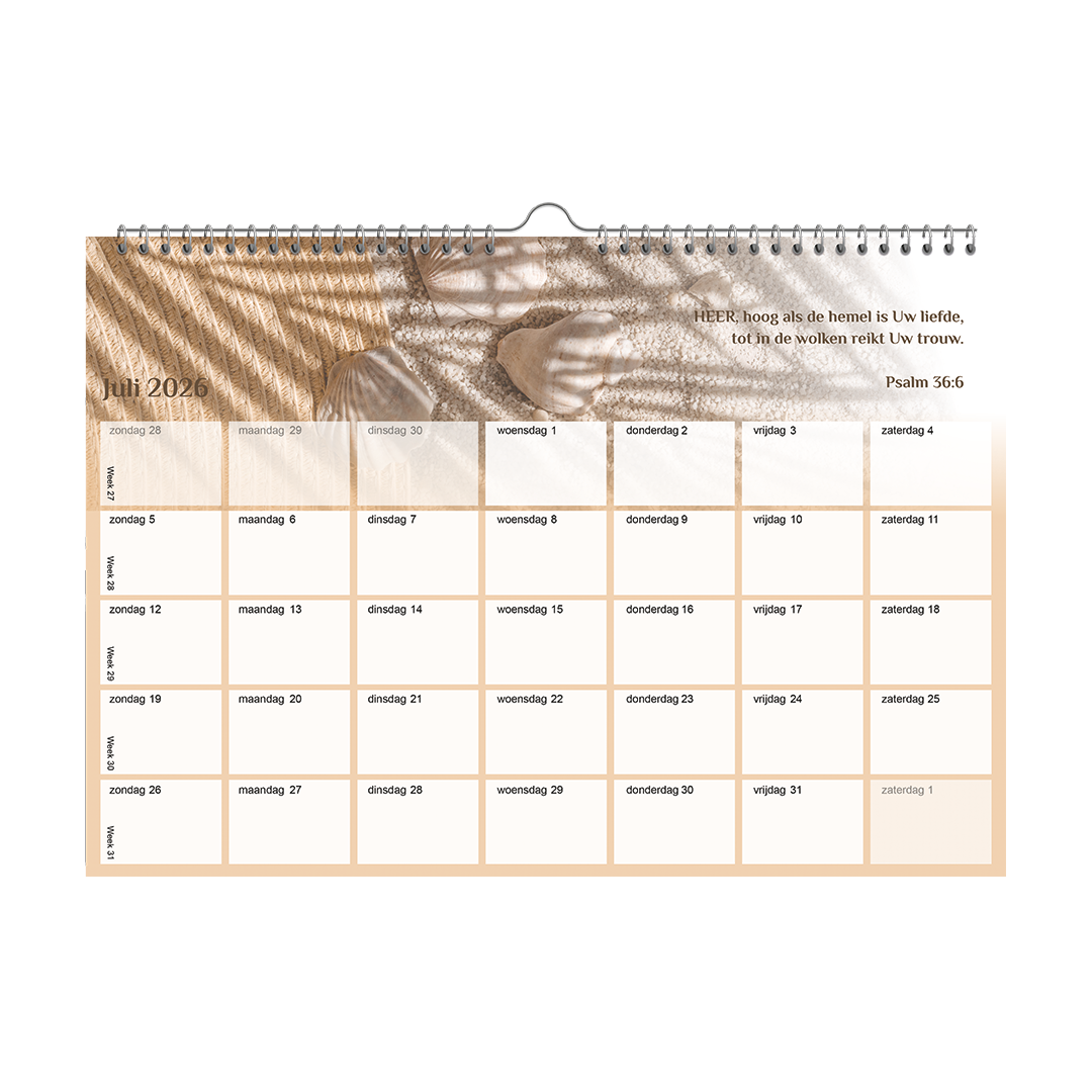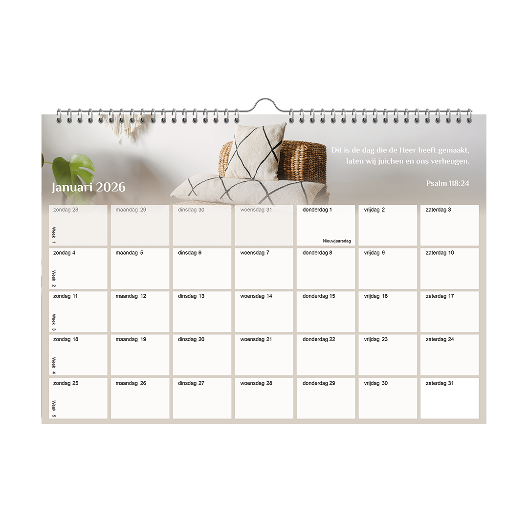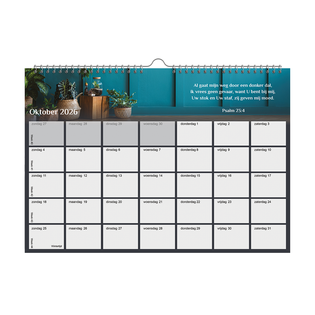 Maandkalender met elke maand een prachtig vers uit de Psalmen, gecombineerd met een ontwerp vol planten.