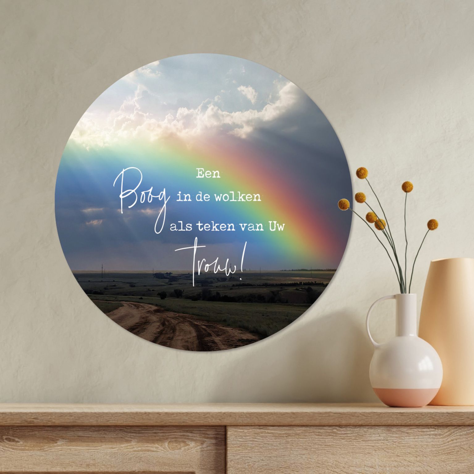 Tekst: ‘Een boog in de wolken als teken van Uw trouw’