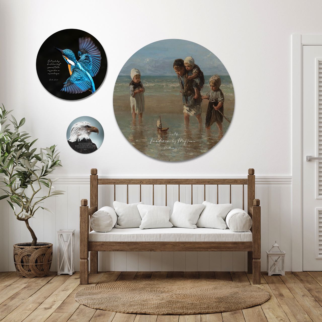 Op deze cirkel staat de bijbeltekst uit Mattheus 19:14: ‘Laat de kinderen bij mij komen.’