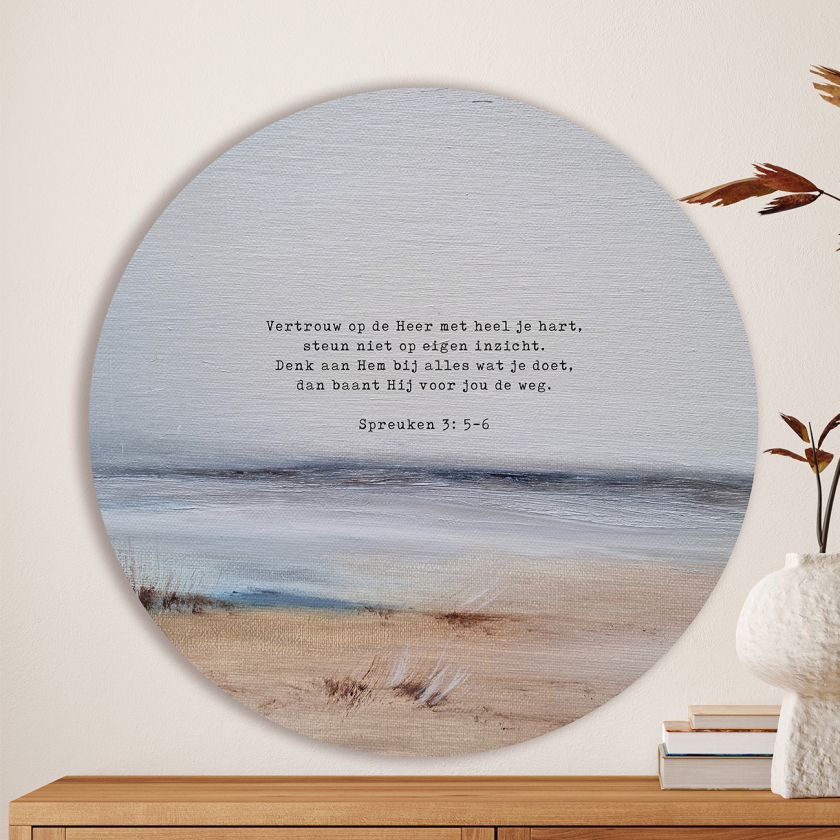 Op deze cirkel staat de bijbeltekst uit Spreuken 3:5-6: ‘Vertrouw op de HEER met heel je hart, steun niet op eigen inzicht. Denk aan Hem bij alles wat je doet, dan baant Hij voor jou de weg.’