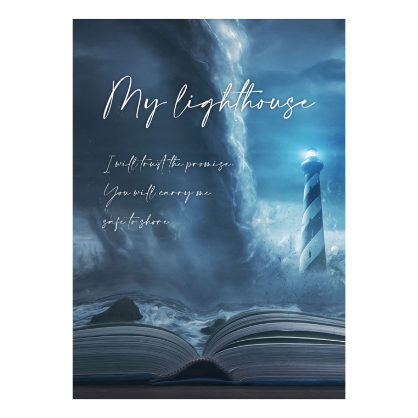 Grote poster met de tekst ‘My lighthouse I will trust the promise, You will carry me safe to shore’