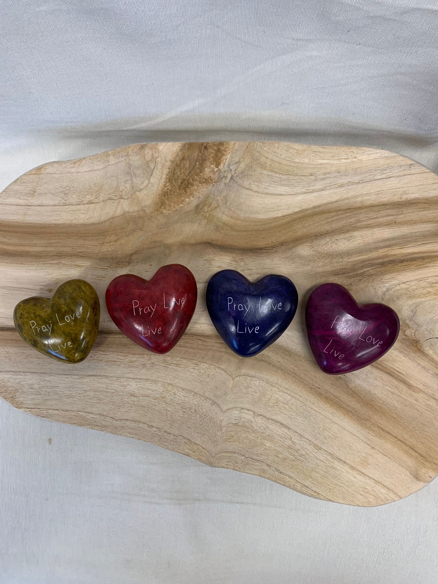 Pray Love Live, groen hart, steen