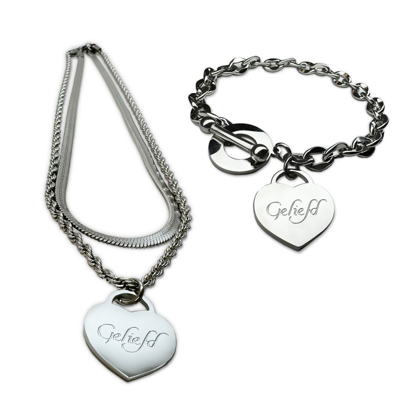Onze sieraden zijn van stainless steel, waardoor ze niet verkleuren, niet afgeven en geen allergische reacties veroorzaken.