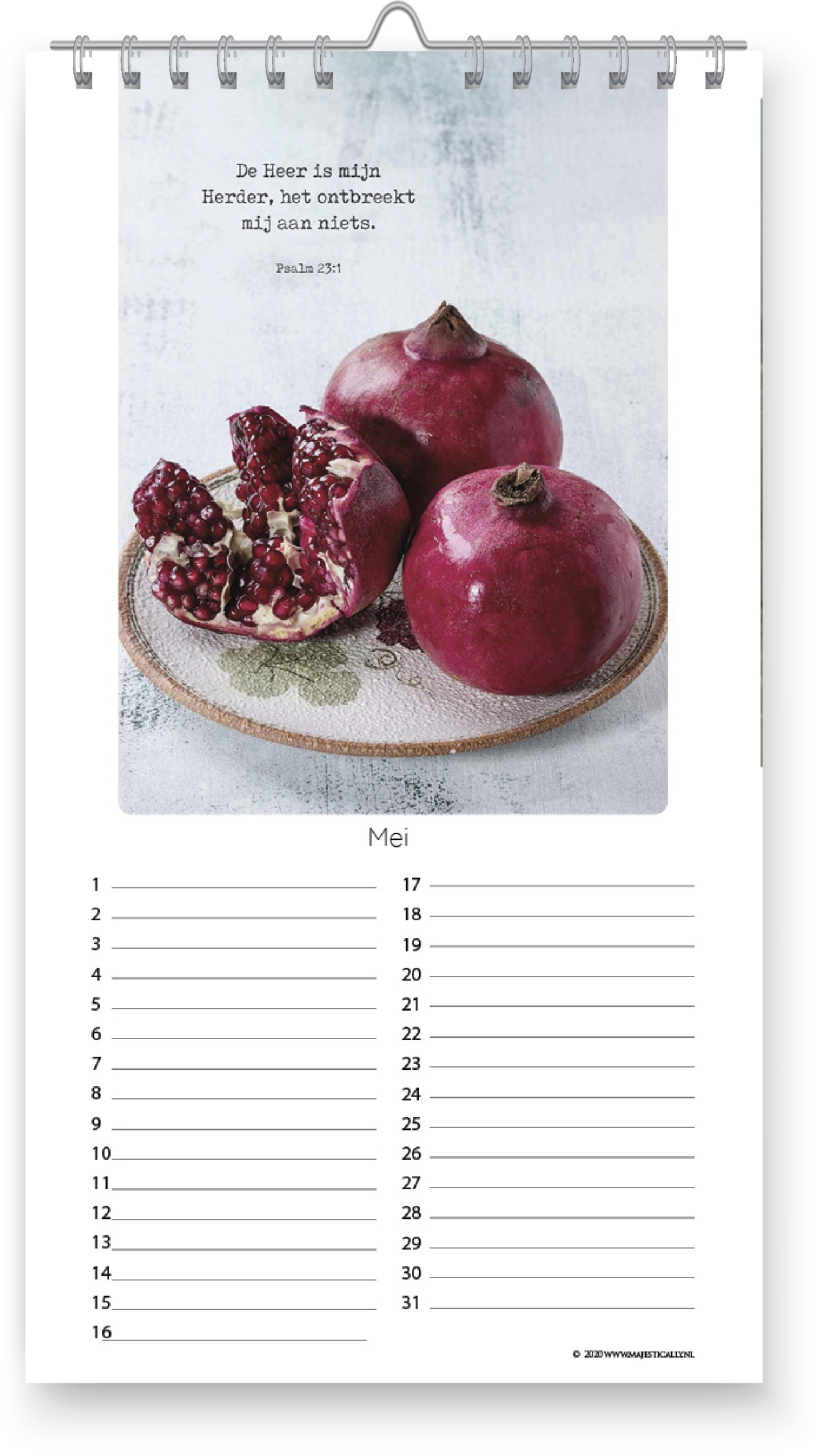 Prachtige verjaardagskalender met landelijke afbeeldingen en Bijbelteksten.