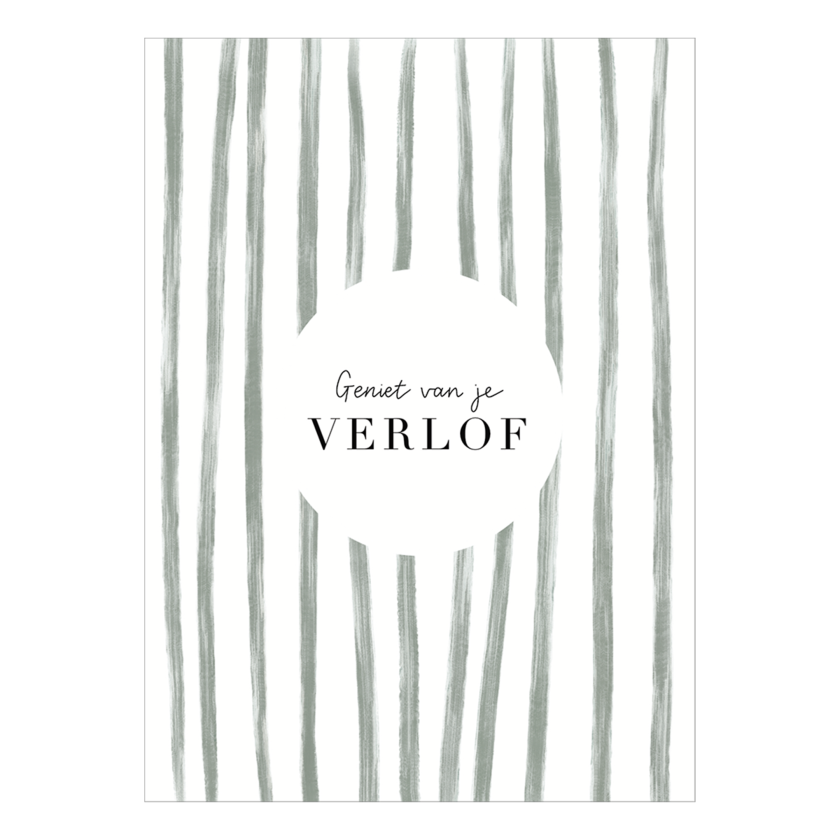 Een enkele kaart op dik papier met de tekst ‘Geniet van je verlof’.