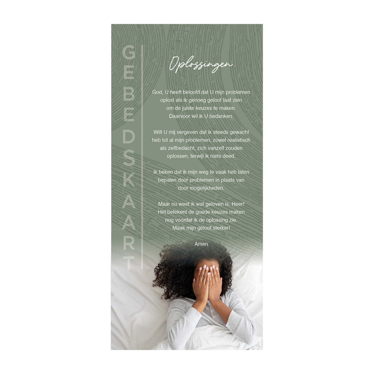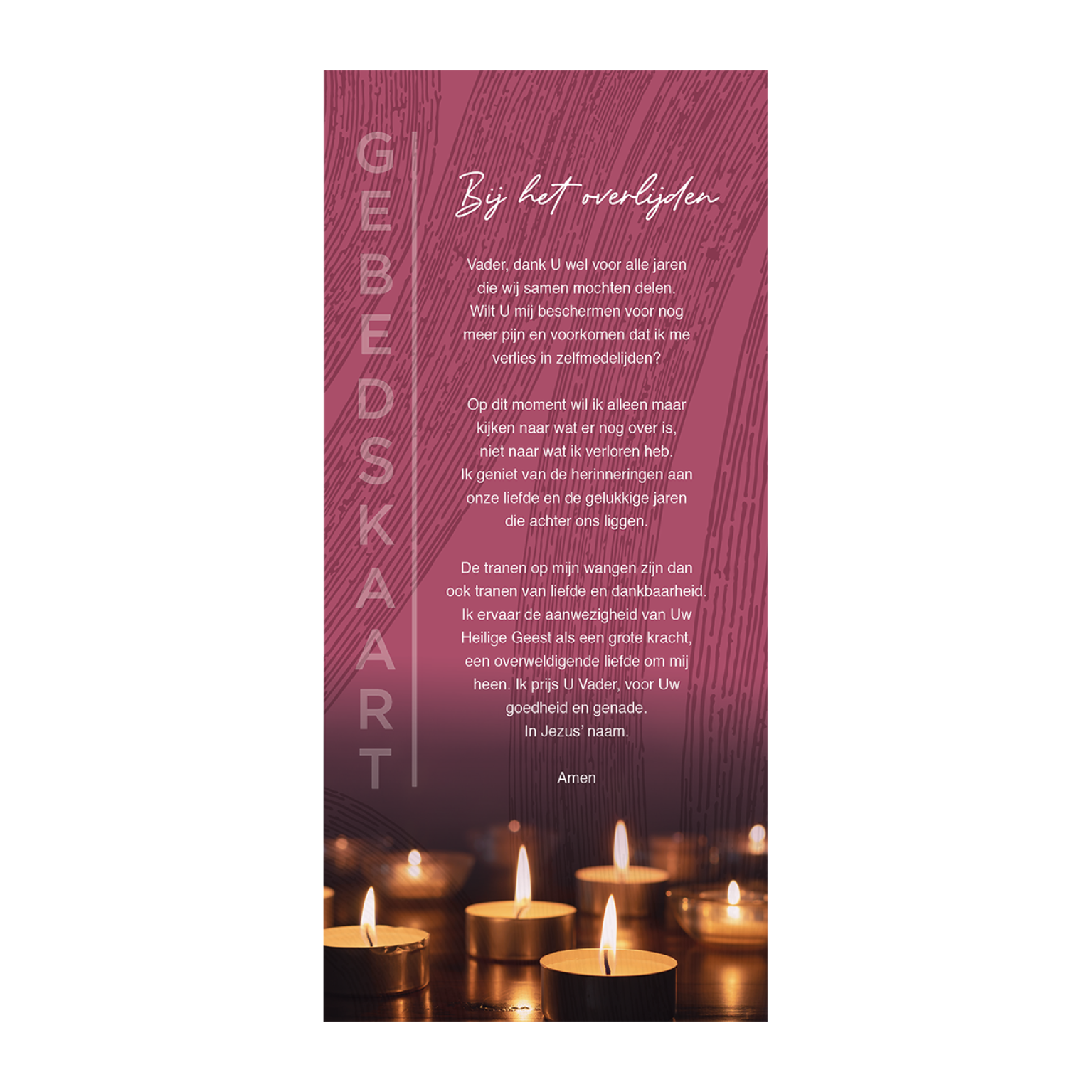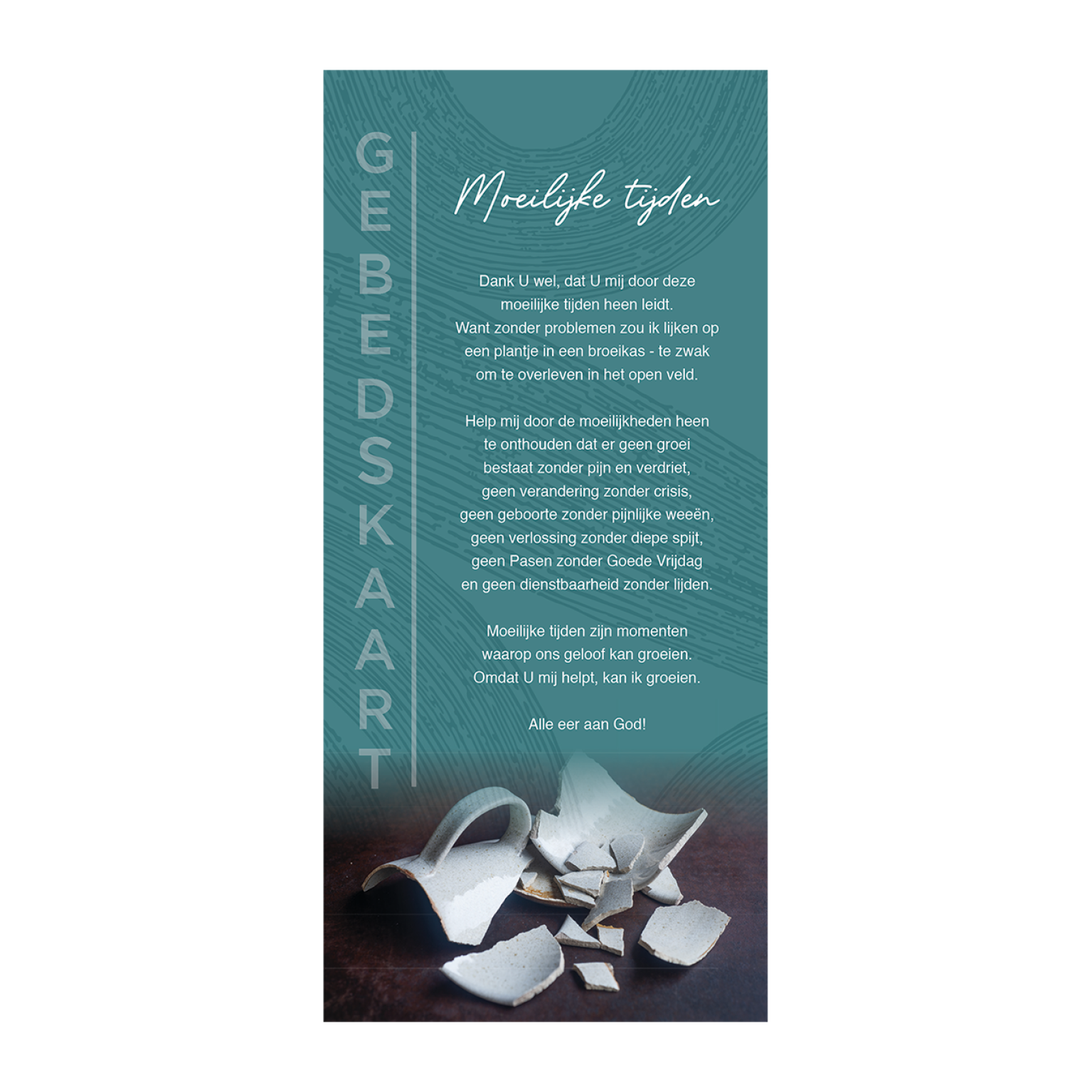 Set van 12 verschillende gebedskaarten met onder andere de volgende titels: Bij het overlijden, Volharding, Een gebed van hoop, De Heer is mijn Herder, St. Patrick en Naderend einde.