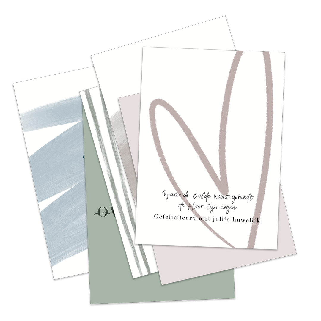 Ontdek het voordeelpakje van de LVS-molen: 12 speciale wenskaarten voor momenten zoals huwelijk, verlof of om iemand te moedigen met teksten als ‘Zet hem op’, ‘Trots op jou’, ‘Bedankt’ en ‘Speciaal voor jou’. Deze set bevat zowel algemene wenskaarten als kaarten met christelijke (Bijbel-)teksten.