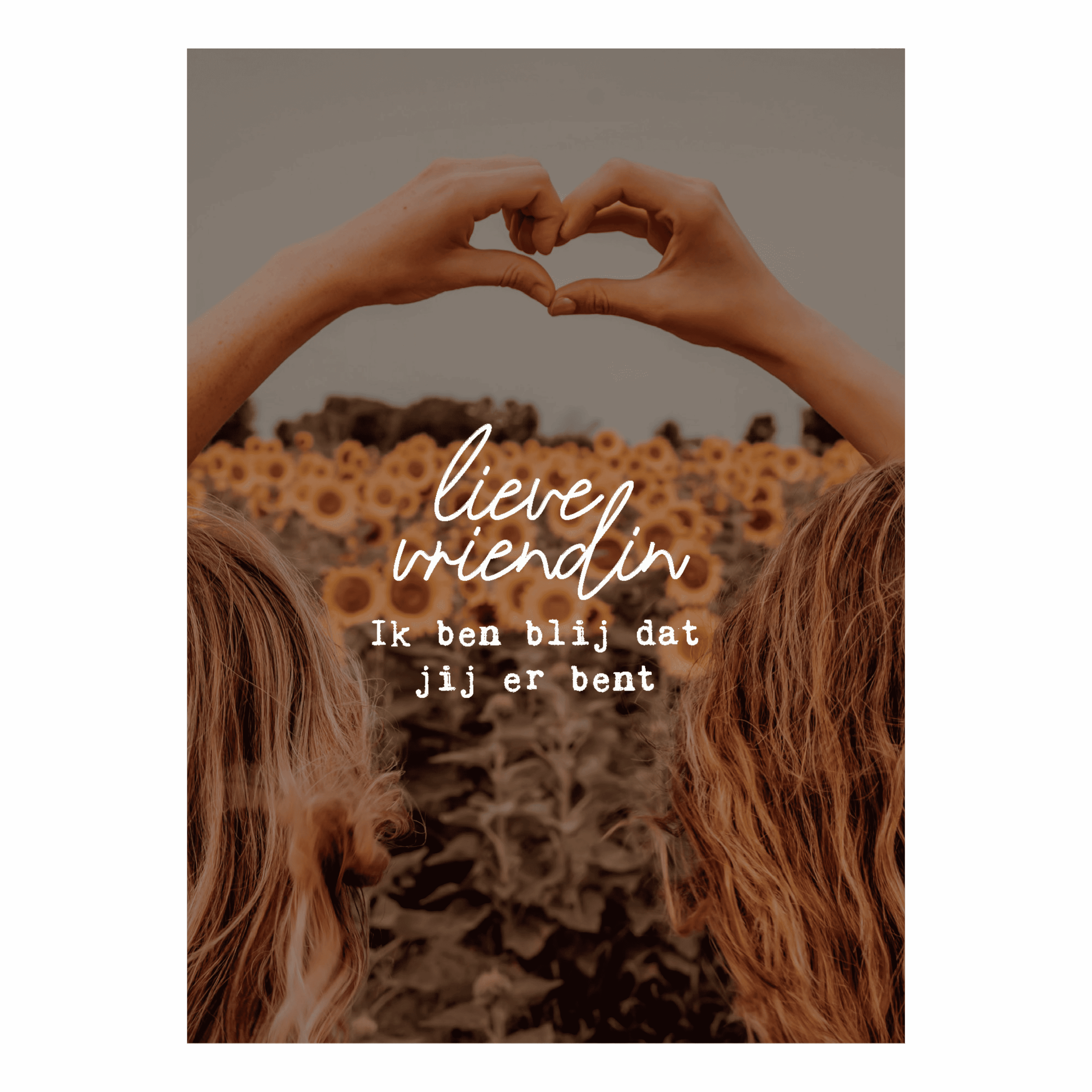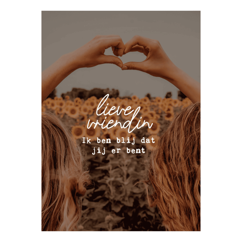 Christelijke dubbele kaart van ca 11×16 cm met de tekst: ‘Lieve vriendin, ik ben blij dat jij er bent’