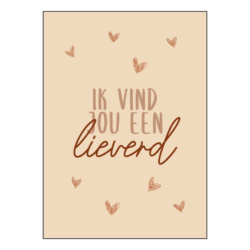 Christelijke dubbele kaart van ca 11×16 cm met de tekst: ‘Ik vind jou een lieverd‘